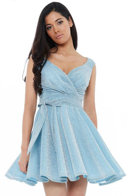 CROSS OVER SLEEVELESS MIDI SKATER DRESS WITH BELT
