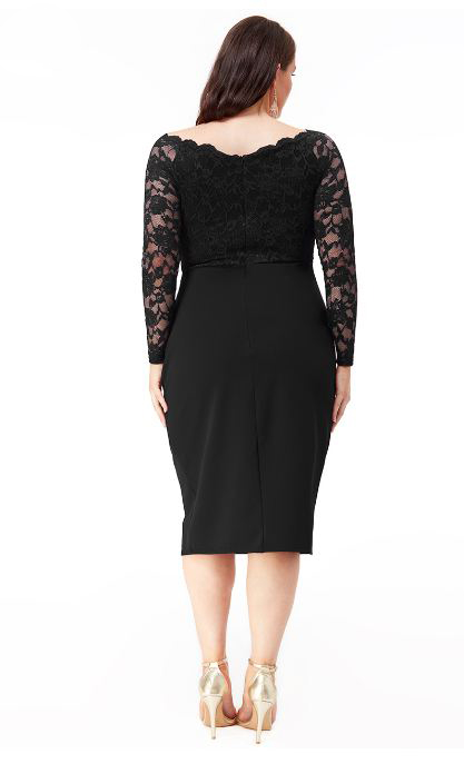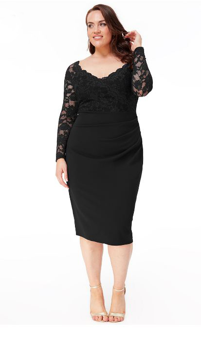 PLUS SIZE LACE WRAP PLEATED MIDI DRESS