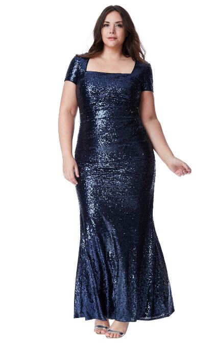 PLUS SIZE SEQUIN PORTRAIT NECKLINE MAXI DRESS