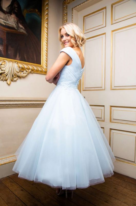 Fabric Swiss Tulle/Lace Dress shown in Baby Blue Swiss Tulle colour card